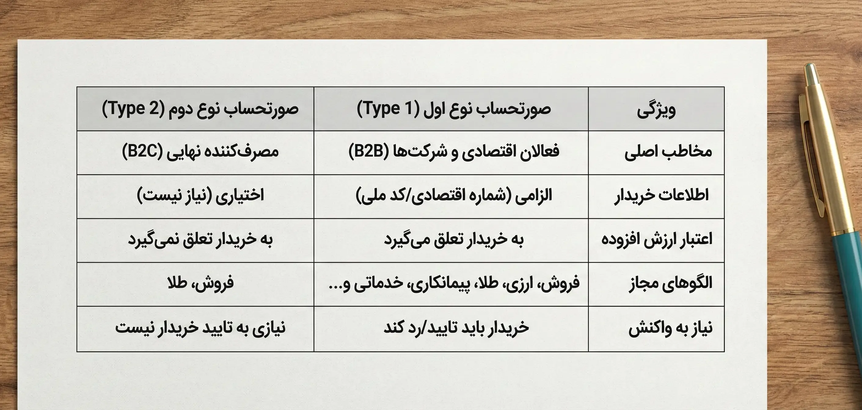 تفاوت صورتحساب نوع اول و دوم در سامانه مودیان + جدول مقایسه